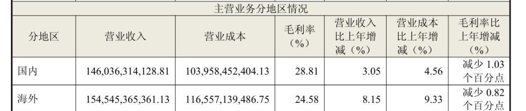 这座“粮仓”并非海尔智家的惬心区。财报露馅,2025年海尔智家外洋居品联系毛利率为24.58%,低于国内阛阓的28.81%,外洋业务的盈利恶果仍有较大升迁空间。