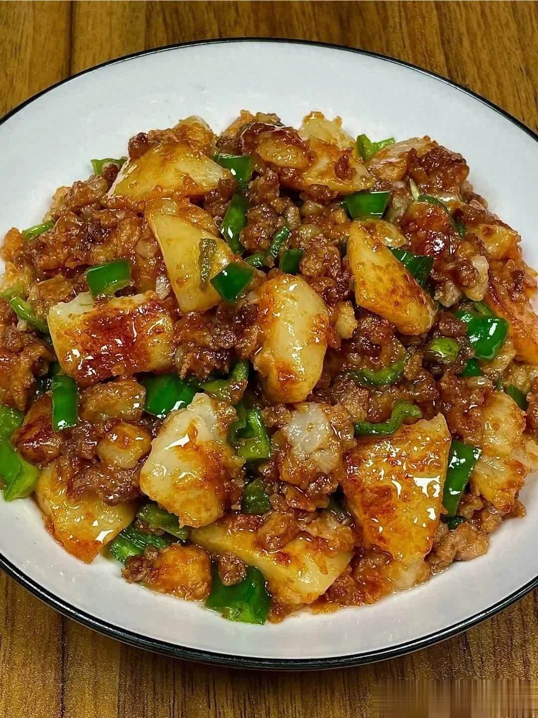 4. 加盐、生抽、白胡椒调味,收干汤汁出锅。为什么推选:青椒的维生素C含量是苹果的8倍!搭配绵密土豆,既能补水抗氧化,又能补充能量,低脂饱腹,春天吃它比喝补汤还管用!